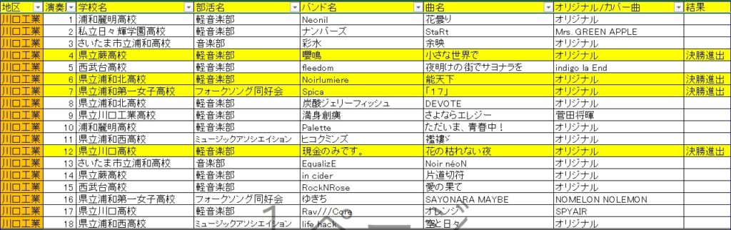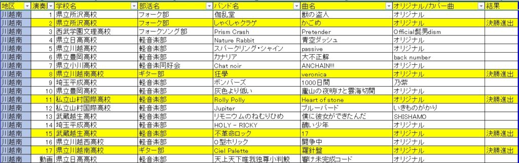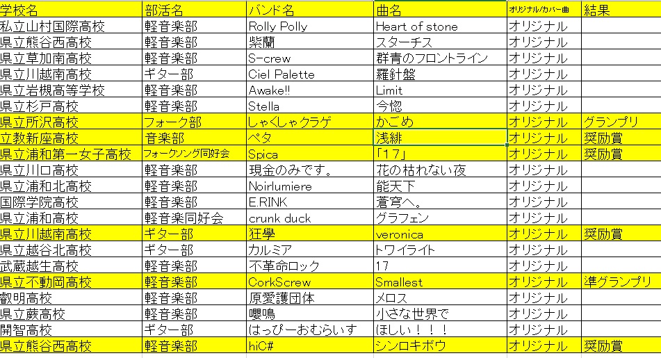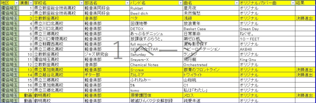 令和7年度(第13回)大会は、予選ライブを5会場で実施し、決勝ライブは1バンドにつき応援5名までの有観客ライブで実施しました。またYouTube限定公開のライブ配信も並行して実施しました。 決勝ライブ結果 予選ライブ結果 投稿ナビゲーション 令和6年度埼玉県新人大会(第12回)結果